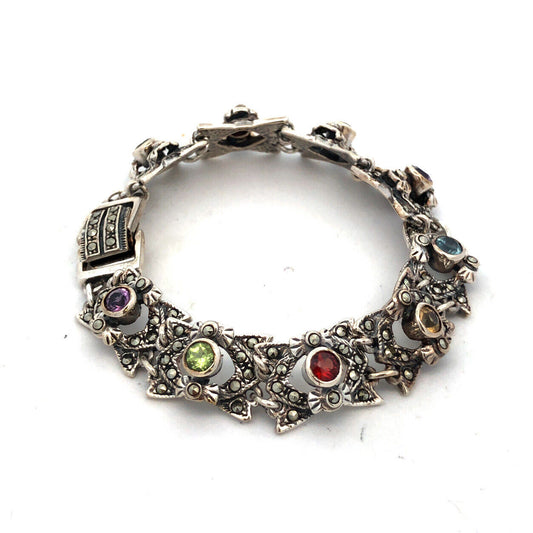 Designer 925 Sterling Silver Multigemstone Statement Tennis Bracelet