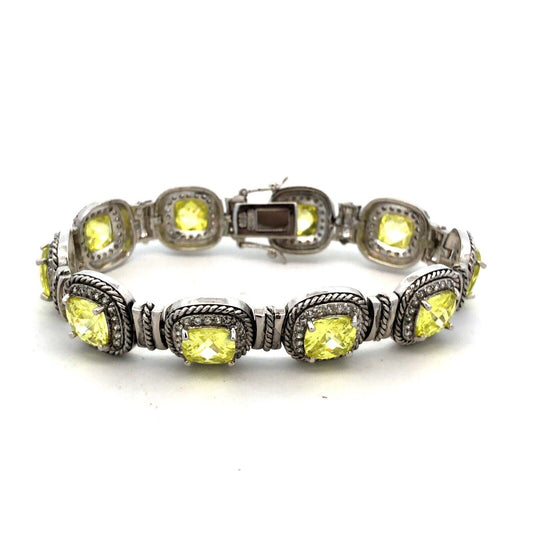 Designer 925 Sterling Silver Princess Green CZ Round White CZ Tennis Bracelet