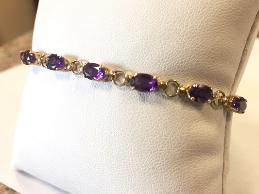10k Yellow Gold Oval Amethyst February Birthday Anniversary Tennis Bracelet