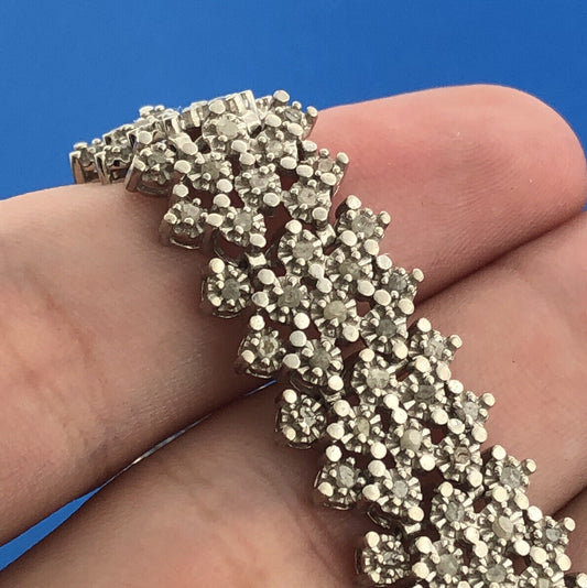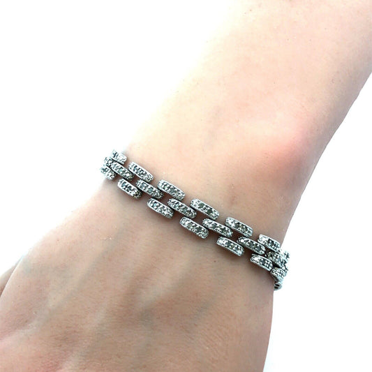 Designer 925 Sterling Silver Diamond Triple Row Bar Link Tennis Bracelet