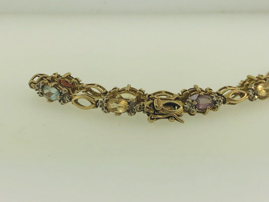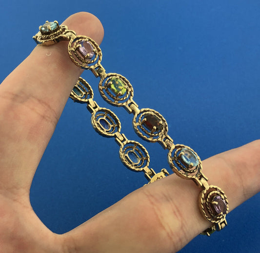 Vermeil Sterling Silver 925 Multi Gemstone Tennis Bracelet