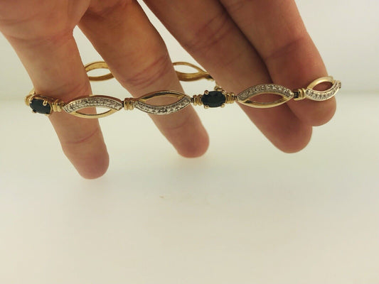 Estate Sterling Silver 925 Vermeil Oval Sapphire Station Tennis Bracelet
