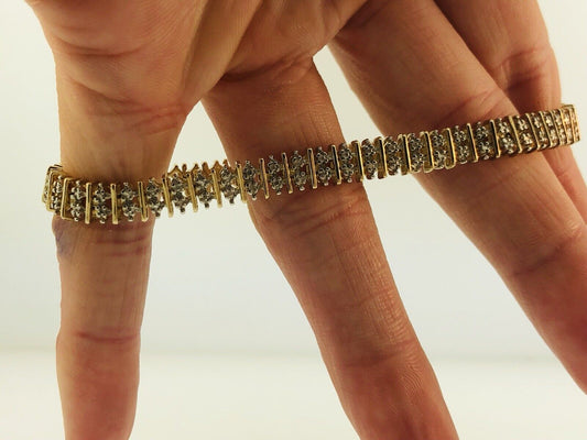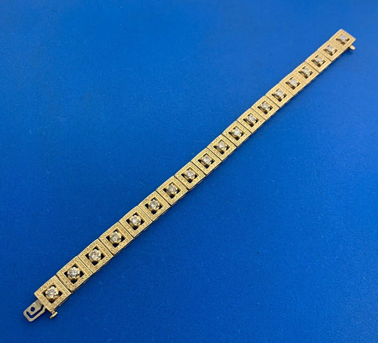 Vintage Sterling Silver 925 Vermeil Diamond Illusion Link Tennis Bracelet S184