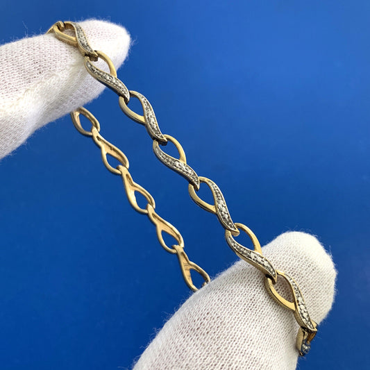 Designer 925 Sterling Silver 14K Gold Diamond Ribbed Cable Link Tennis Bracelet