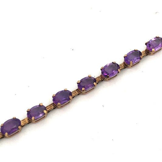 Vintage 10K Oval Amethyst Panel Bar Link February Anniversary Tennis Bracelet
