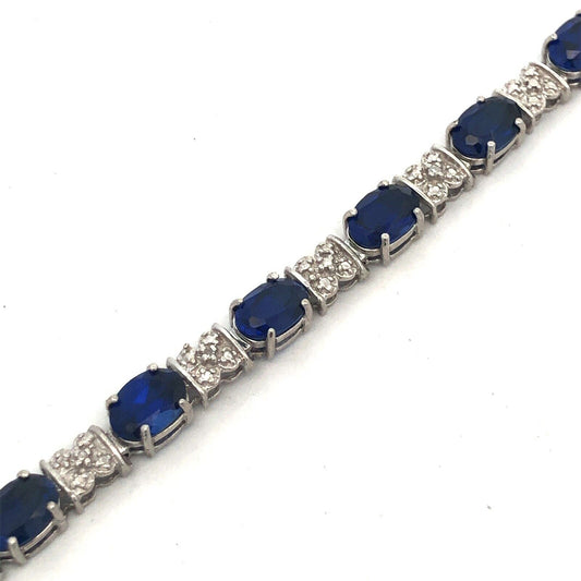 Stunning 10K White Gold Simulated Sapphire Diamond Anniversary Tennis Bracelet