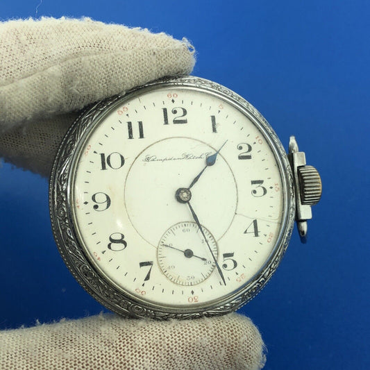 1904 Hampden William McKinley Grade Model 4 17j Silver Tone Pocket Watch Working