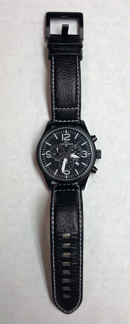 Air Blue Bravo Precision Pilot Mens Watch Chronograph Black Leather Strap In Box