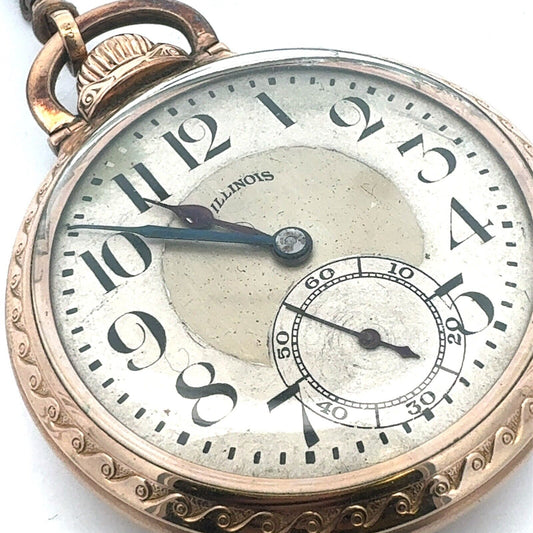 1925 Illinois Bunn Special Model 9 10K Gold Filled Railroad Pocket Watch w/Fob