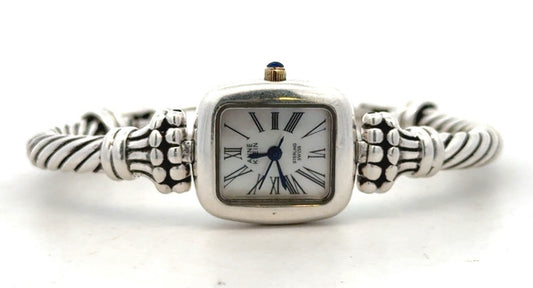 Anne Klein 925 Sterling Silver Mother of Pearl Roman Numerals Cable Watch