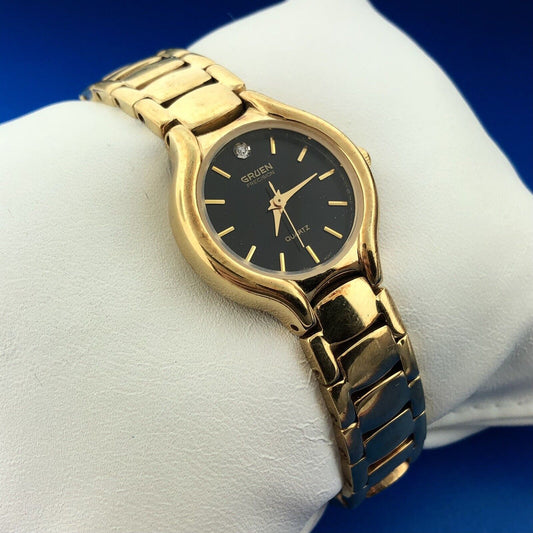 Gruen Precision Gold Tone Stainless Steel Diamond Accented Vintage Ladies Watch