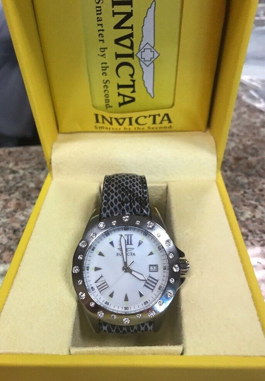 Invicta Women's Angel Quartz 100m Stainless Steel Watch Model 18350 Grey Leather