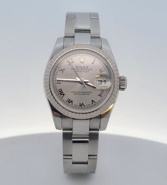 Ladies Rolex Oyster Perpetual Datejust Stainless Rhodium Roman Dial - 179174
