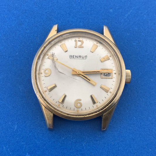 Mid Century Benrus 17 Jewels Date Window Wrist Working Watch Head