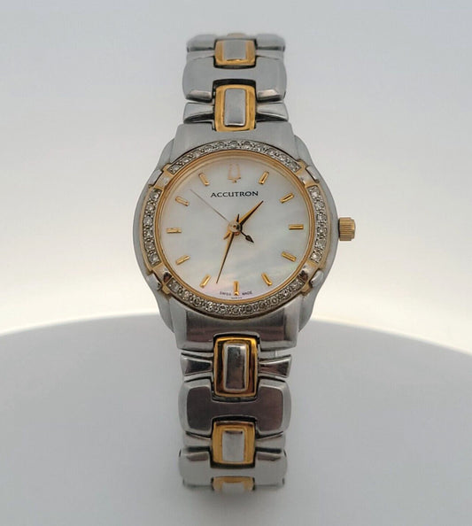 Ladies Bulova Accutron Barcelona Mother of Pearl Dial Diamond Bezel Quartz Watch