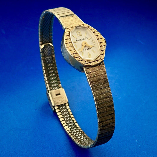 Mid Century Ladies 10K Rolled Yellow Gold Plate Baroness 17j Automatic Watch
