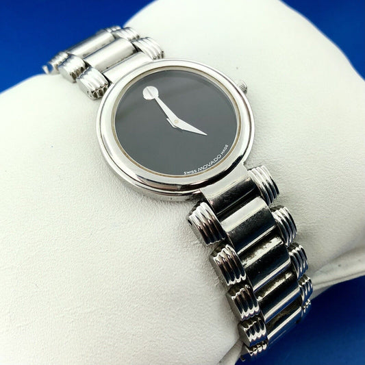 Movado Serenade 84 A1 1844 Strato Black Dial Ladies Stainless Steel Watch