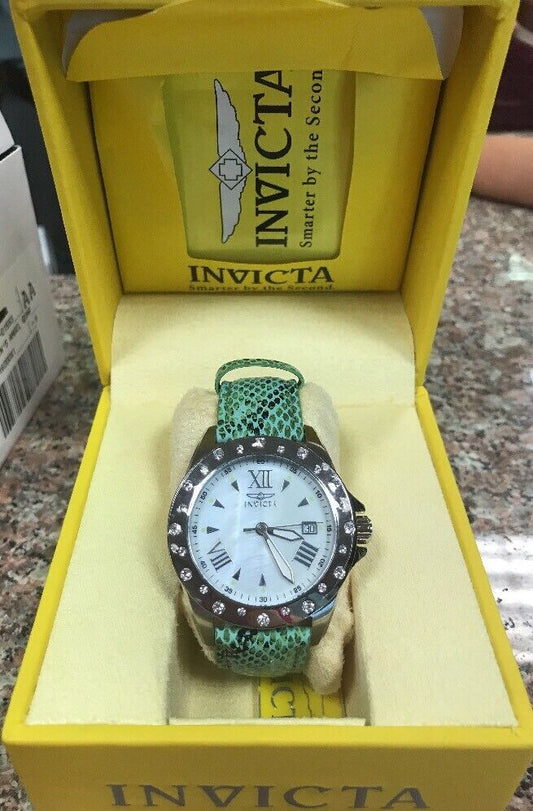 Invicta Women's Angel Quartz Stainless Steel Watch Model 18351 Green Leather