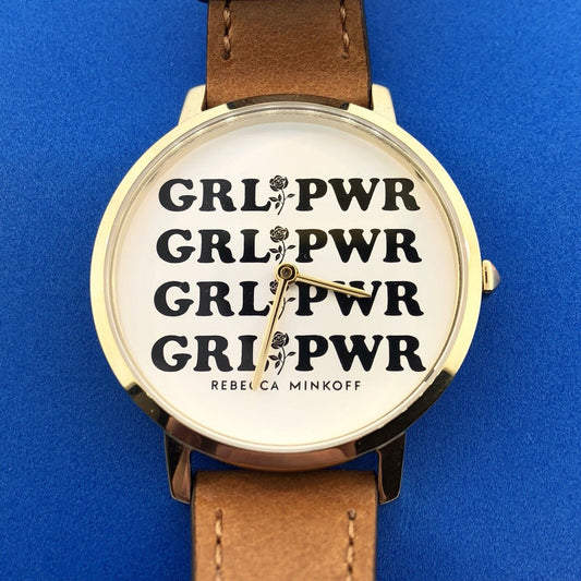 Rebecca Minkoff GRL PWR Girl Power Leather Strap Women's Designer Watch In Box