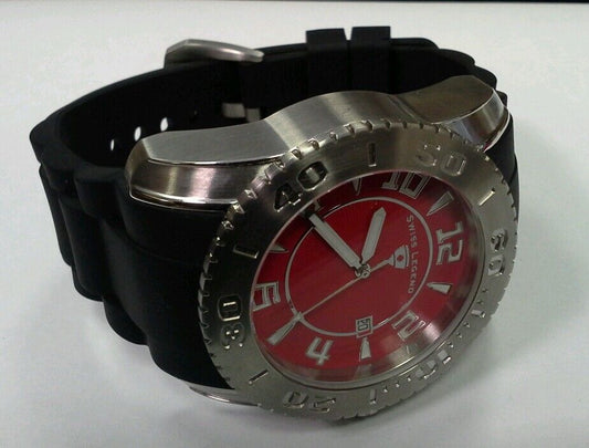 Swiss Legend Men Commander Stainless Steel Black Silicone Red Dial Watch 316L
