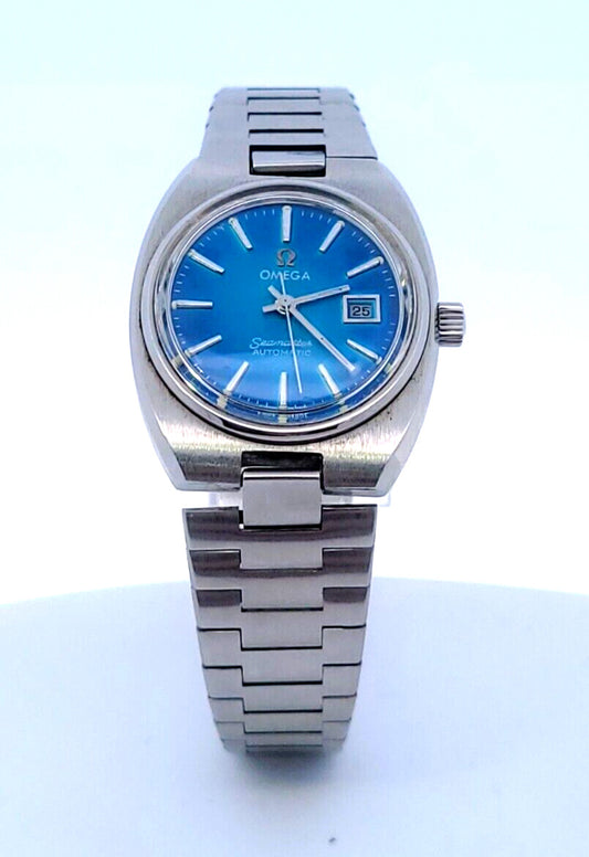 Omega Seamaster Automatic Date Stainless Steel 27mm Blue Dial Vintage Watch