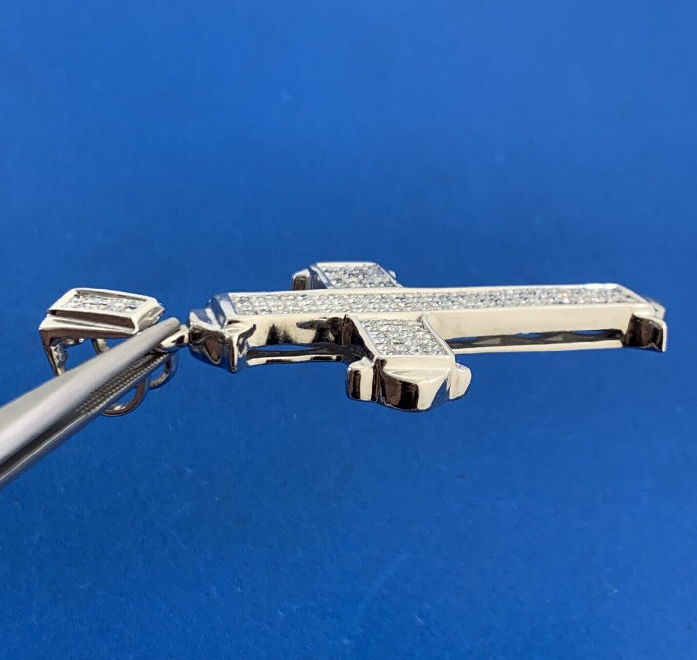 14K White Gold Princess Cut Diamond Statement Cross Pendant