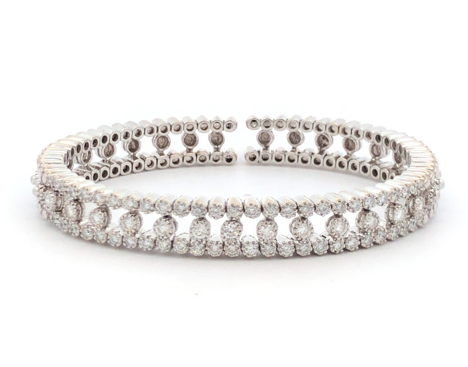 14K White Gold Round Diamond Stackable Statement Cuff Bracelet