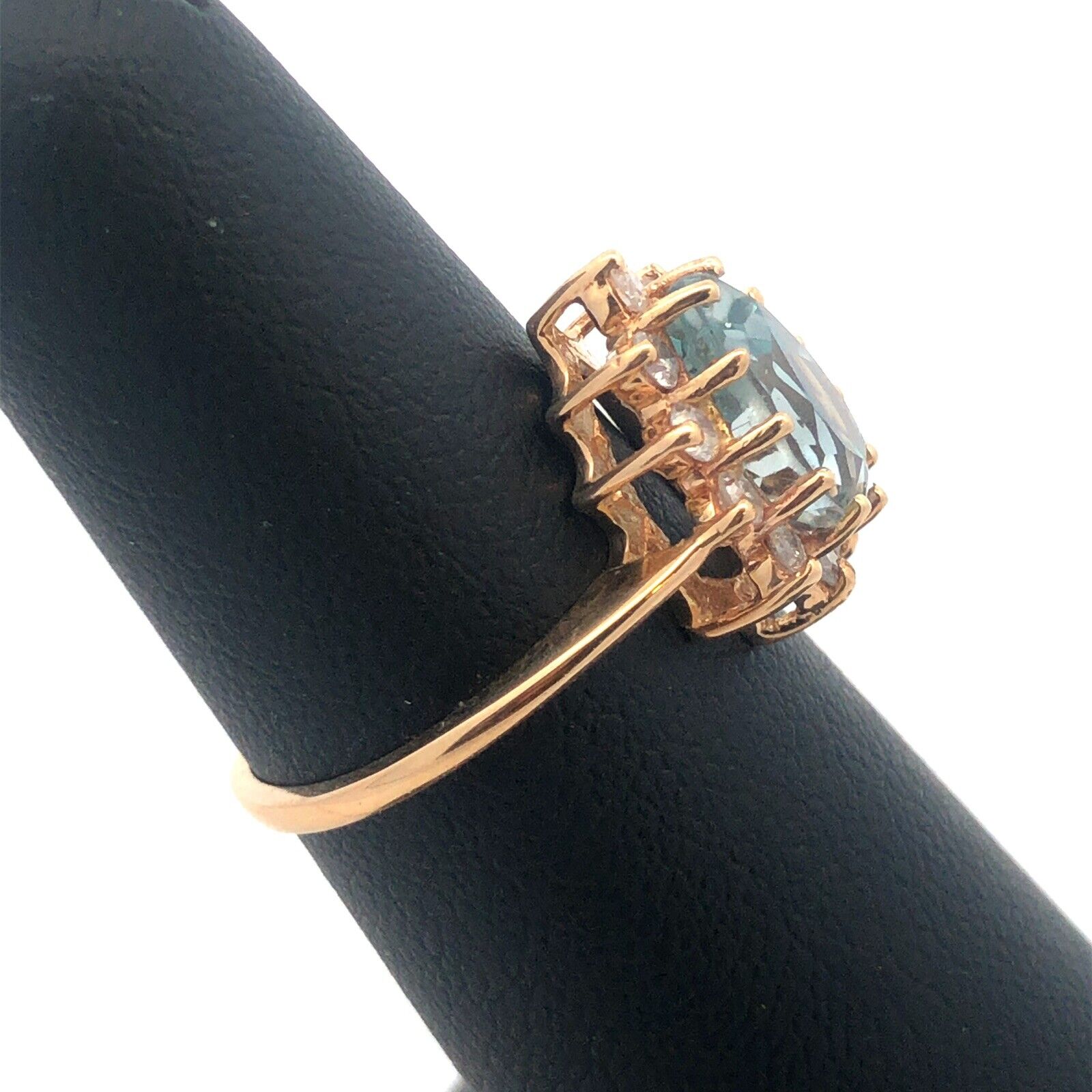 14K Yellow Gold Blue Topaz Diamond Halo December Birthday Occasion Cocktail Ring