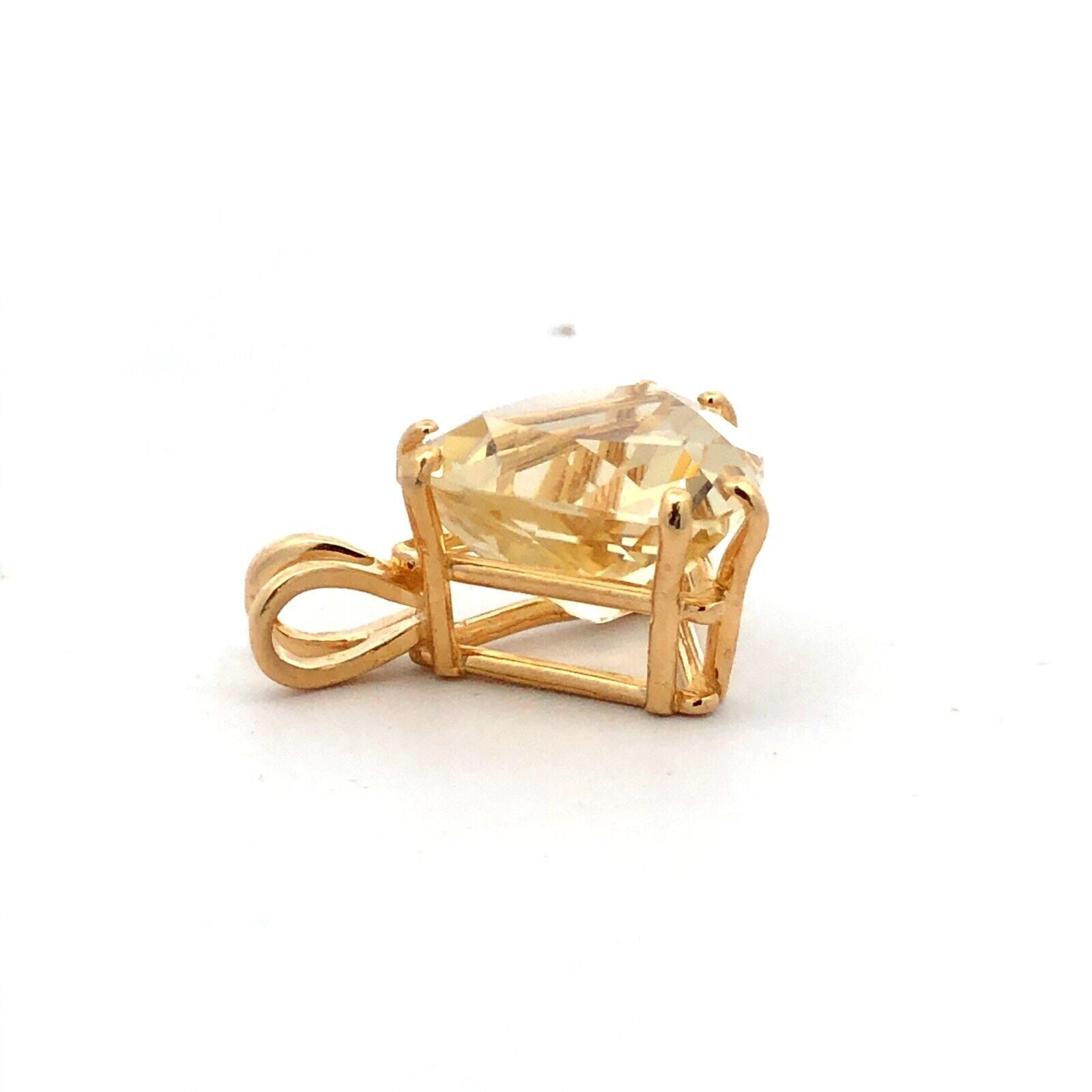 14K Yellow Gold Designer Trillion Cut Honey Lemon Quartz Solitaire Pendant