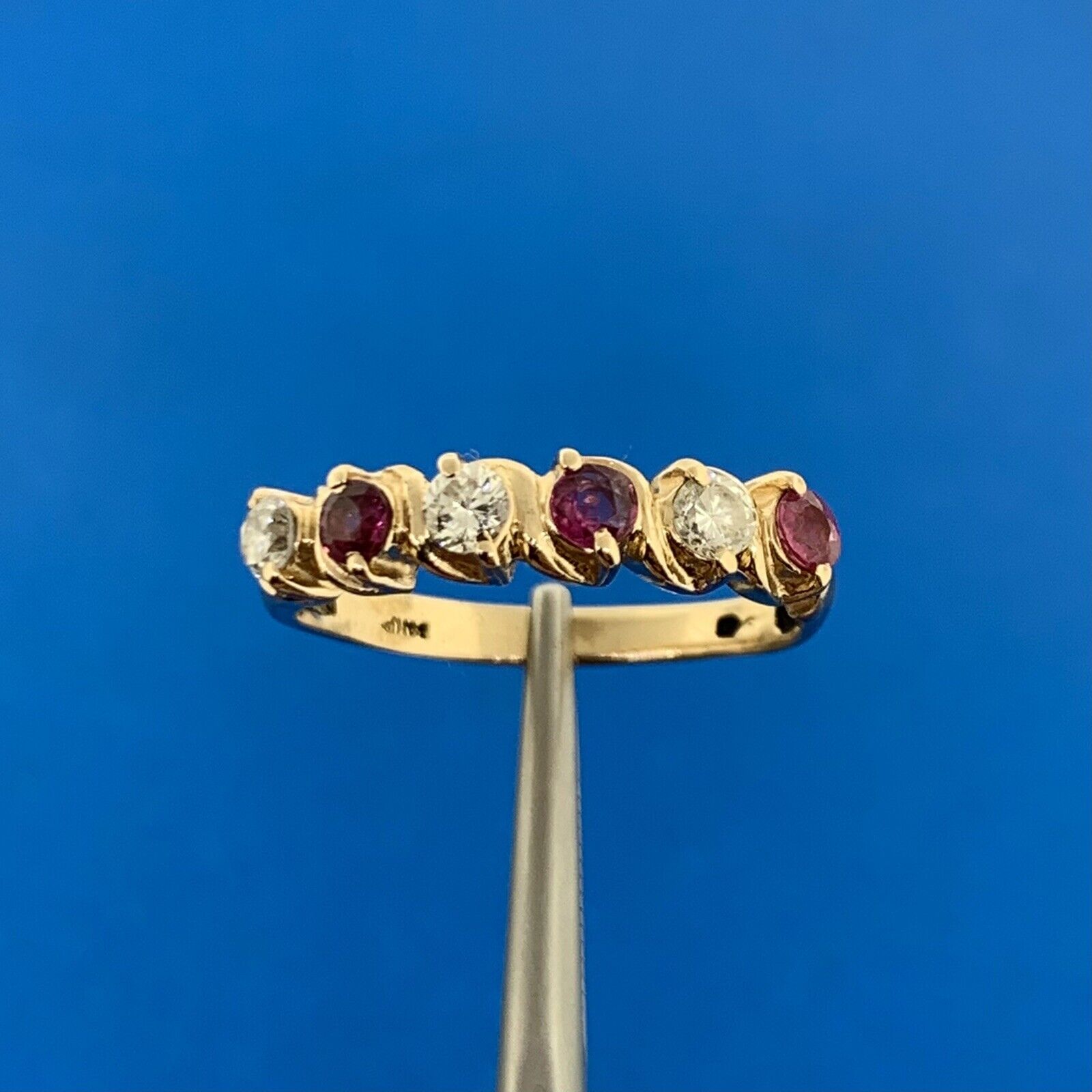 14K Yellow Gold Diamond Ruby July Birthday Wedding Anniversary Size 7 Band Ring