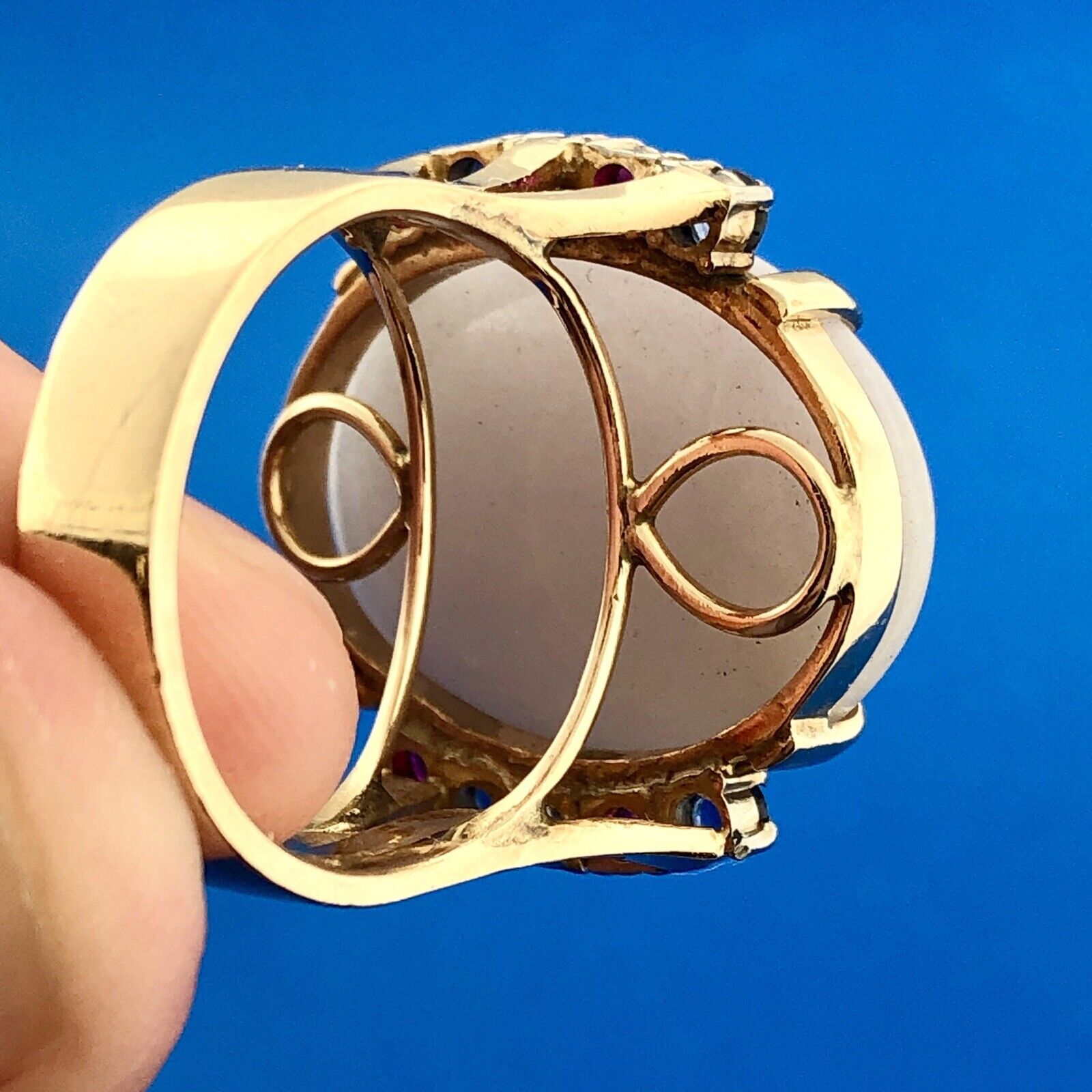 14K Yellow Gold Lavender Jade Diamond Ruby Sapphire Accented Statement Ring