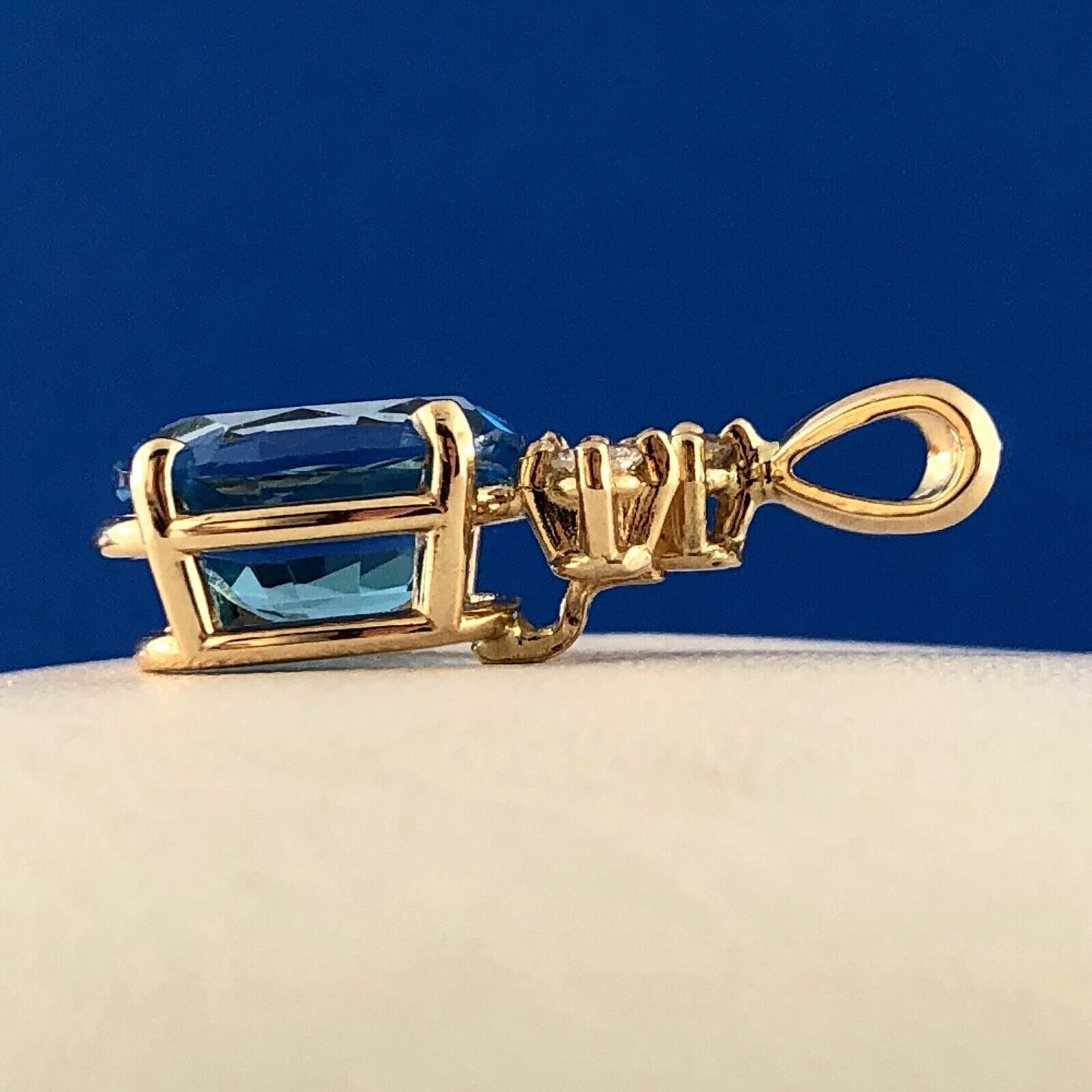 - 14K Yellow Gold London Blue Topaz Diamond Drop December Anniversary Pendant