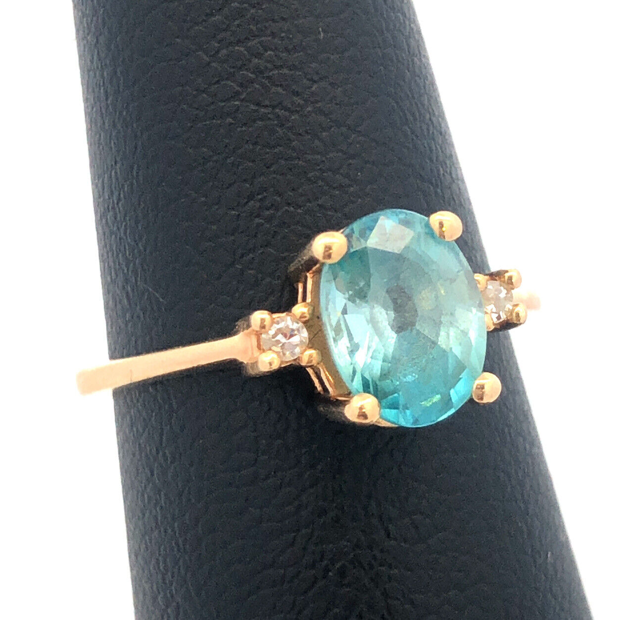 14k Yellow Gold Oval Blue Topaz Ring with Diamond Accents