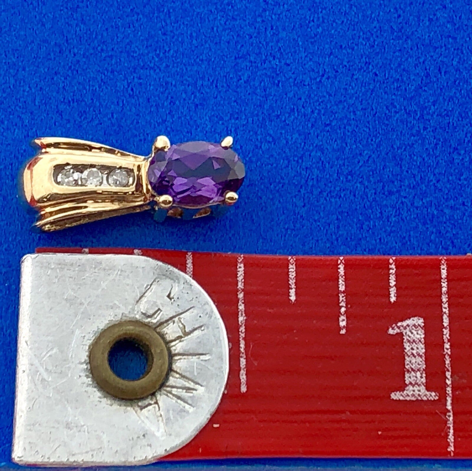 14K Yellow Gold Oval Pink Sapphire Diamond Accent Petite Drop Dangle Pendant