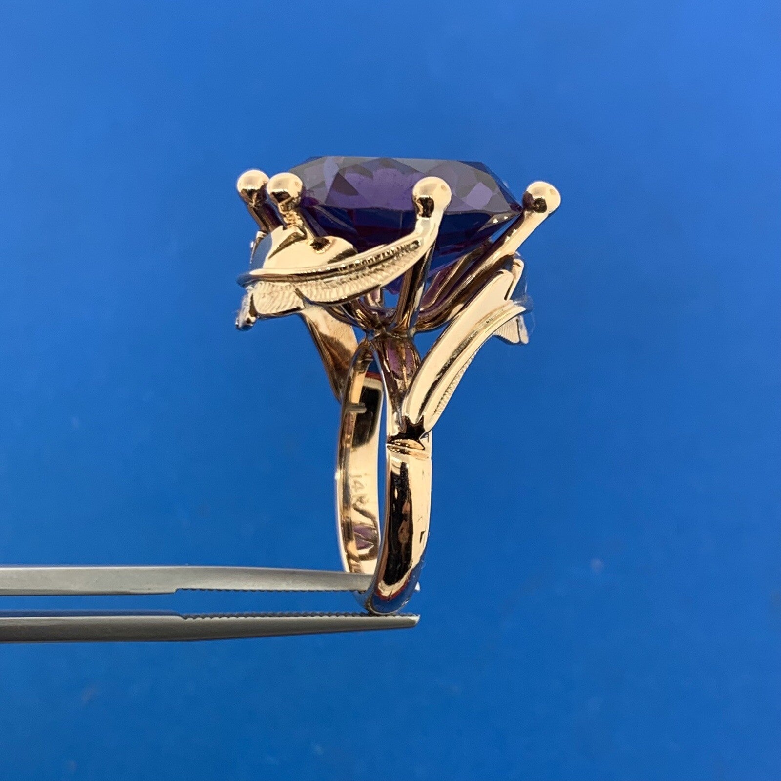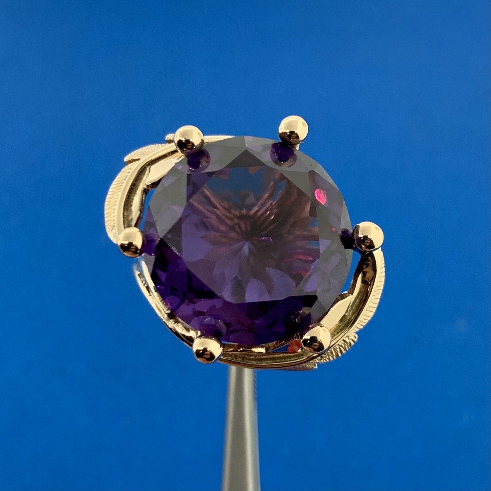 - 114K Yellow Gold Purple Sapphire Solitaire Statement Cocktail Size 7.75 Ring