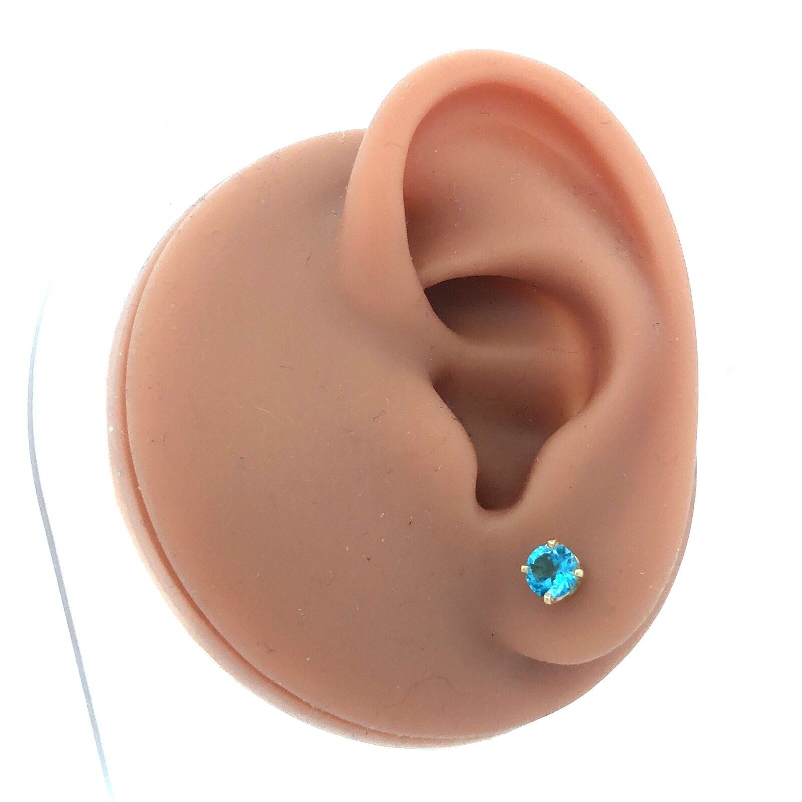 14K Yellow Gold Round Blue Topaz Solitaire December Occasion Screw Back Earrings