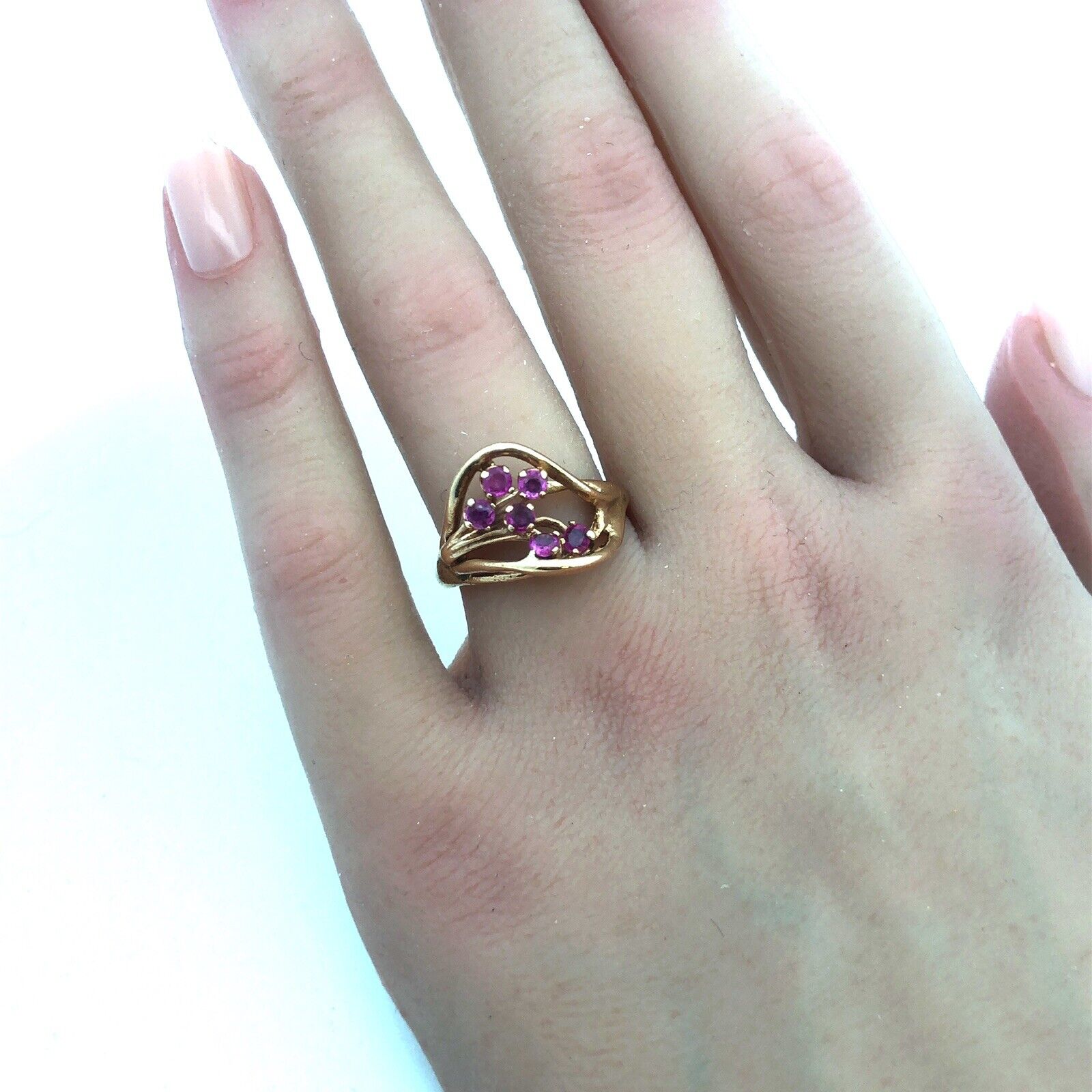 14K Yellow Gold Ruby Cluster Free Form Modernist July Birthday Cocktail Ring