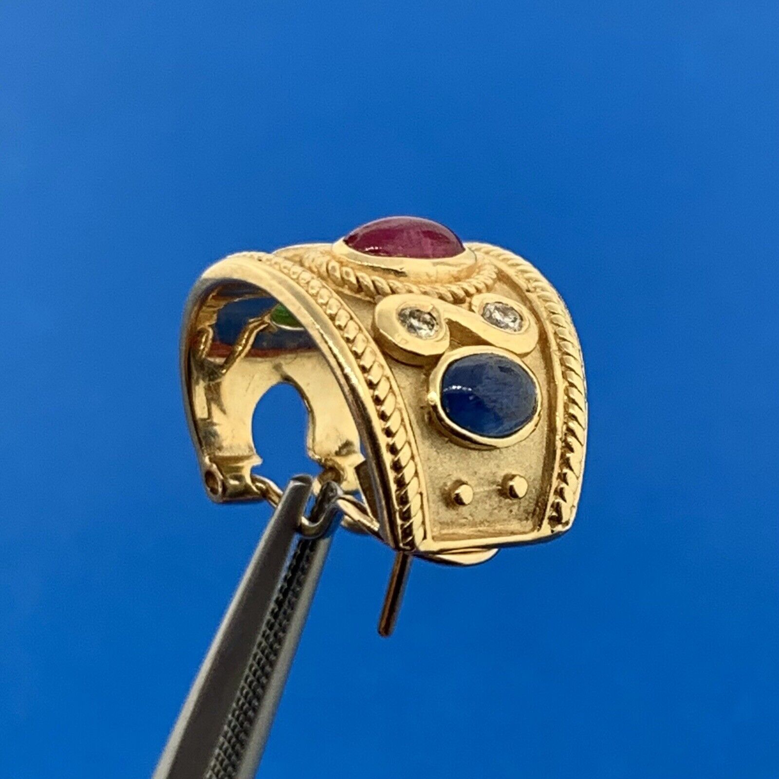 14K Yellow Gold Ruby Sapphire Emerald Diamond Statement Omega Back Earrings