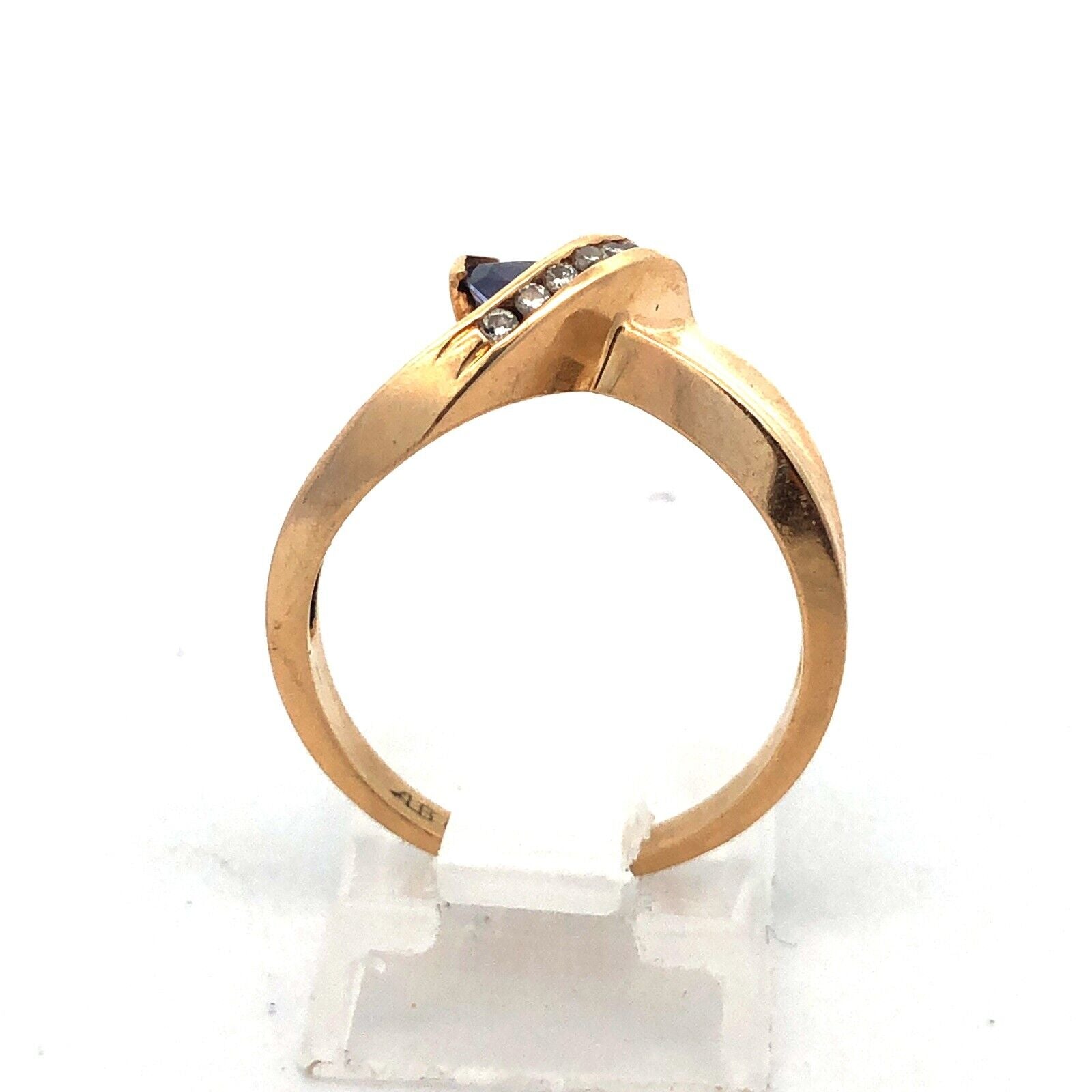 - 14k Yellow Gold Trillion Tanzanite Diamond Modernist Bypass Cocktail Ring