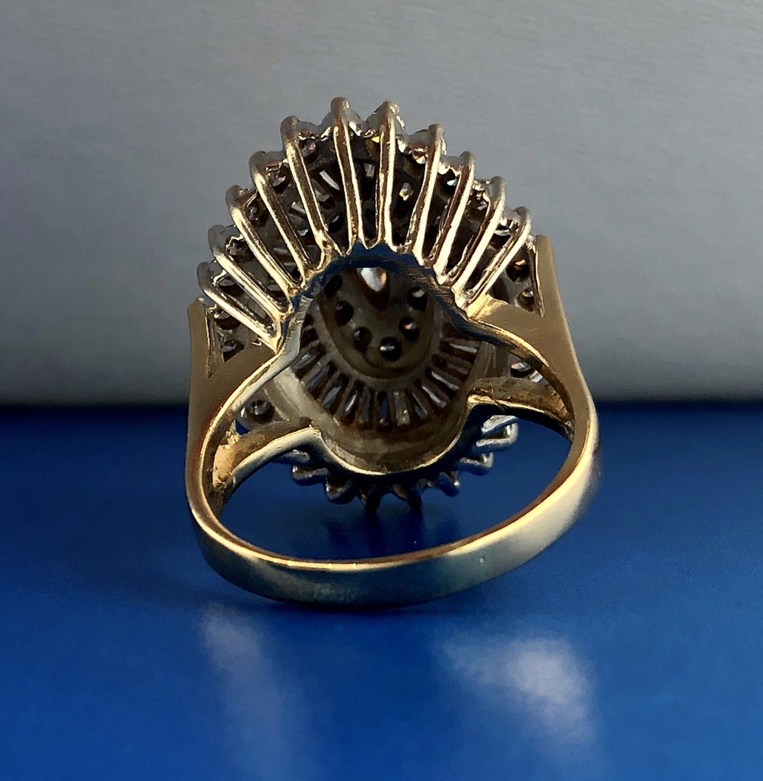 - 14K Yellow White Gold Diamond Halo Cluster 4 Tier Statement Cocktail Ring