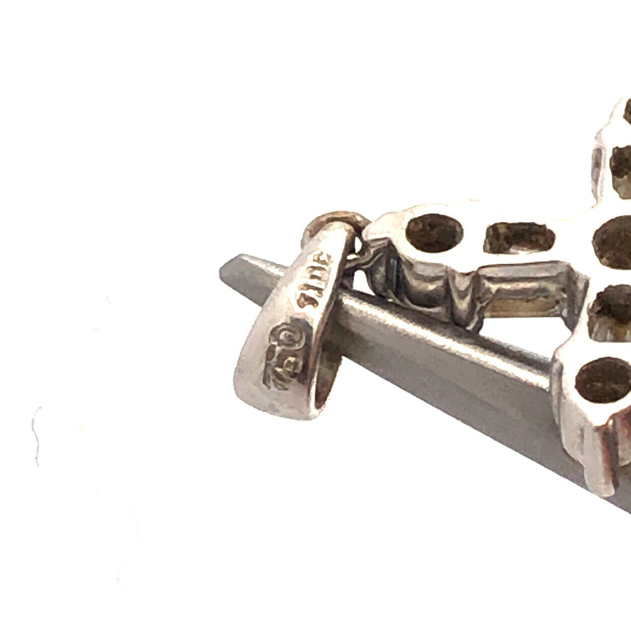 - 18K White Gold Round & Baguette Diamond Encrusted Religious Cross Pendant