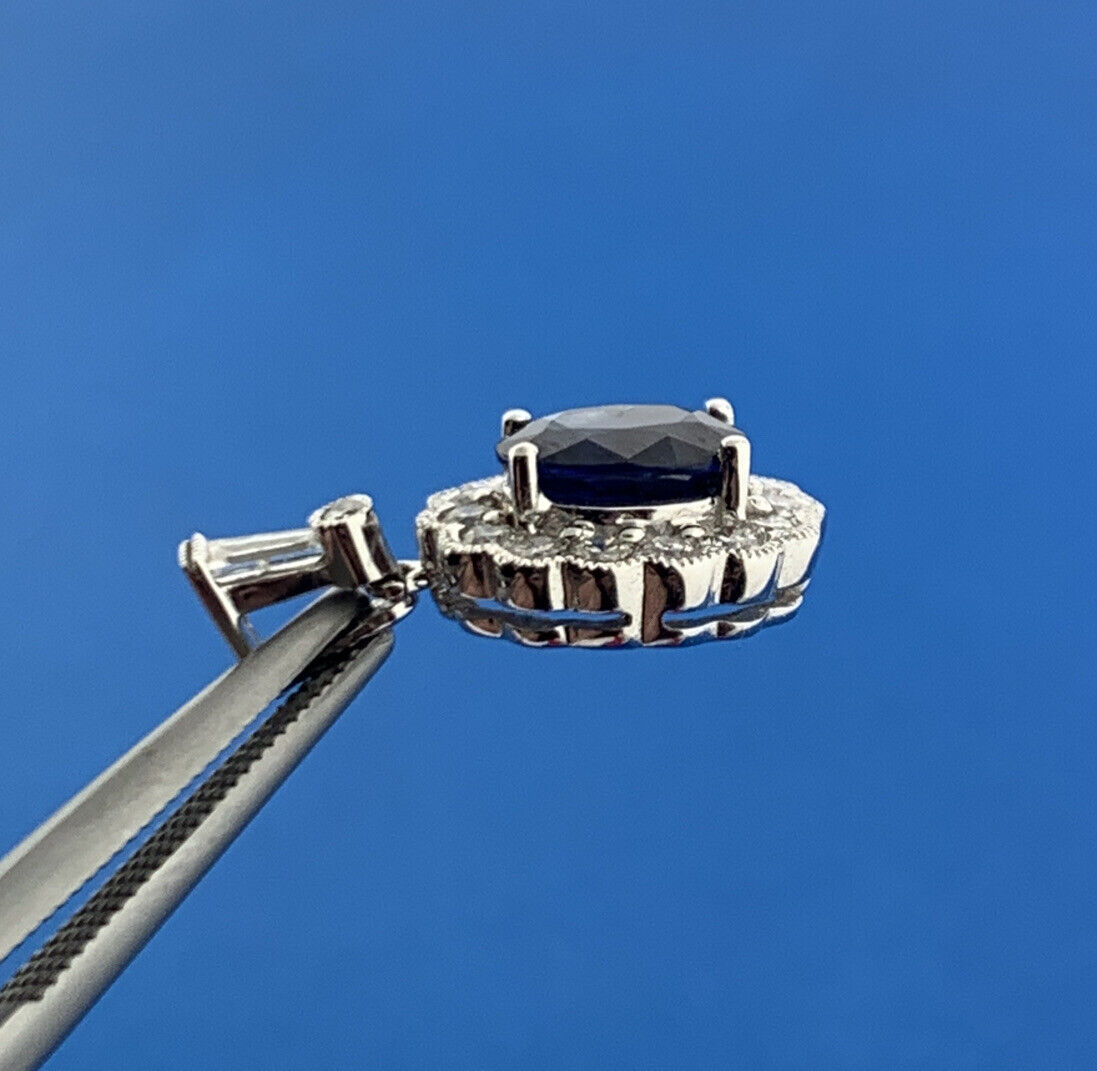 18K White Gold Sapphire Diamond Halo September Anniversary Pendant