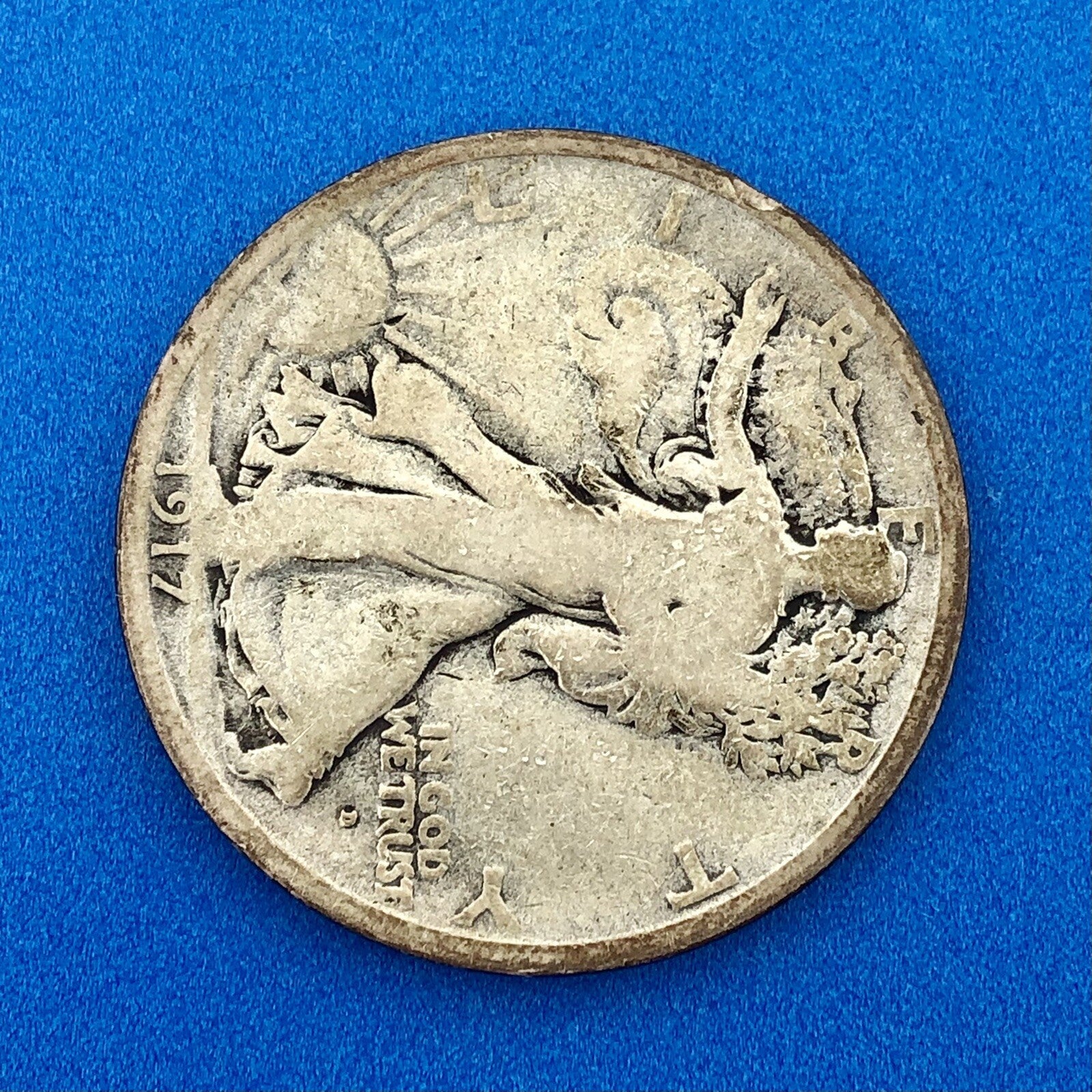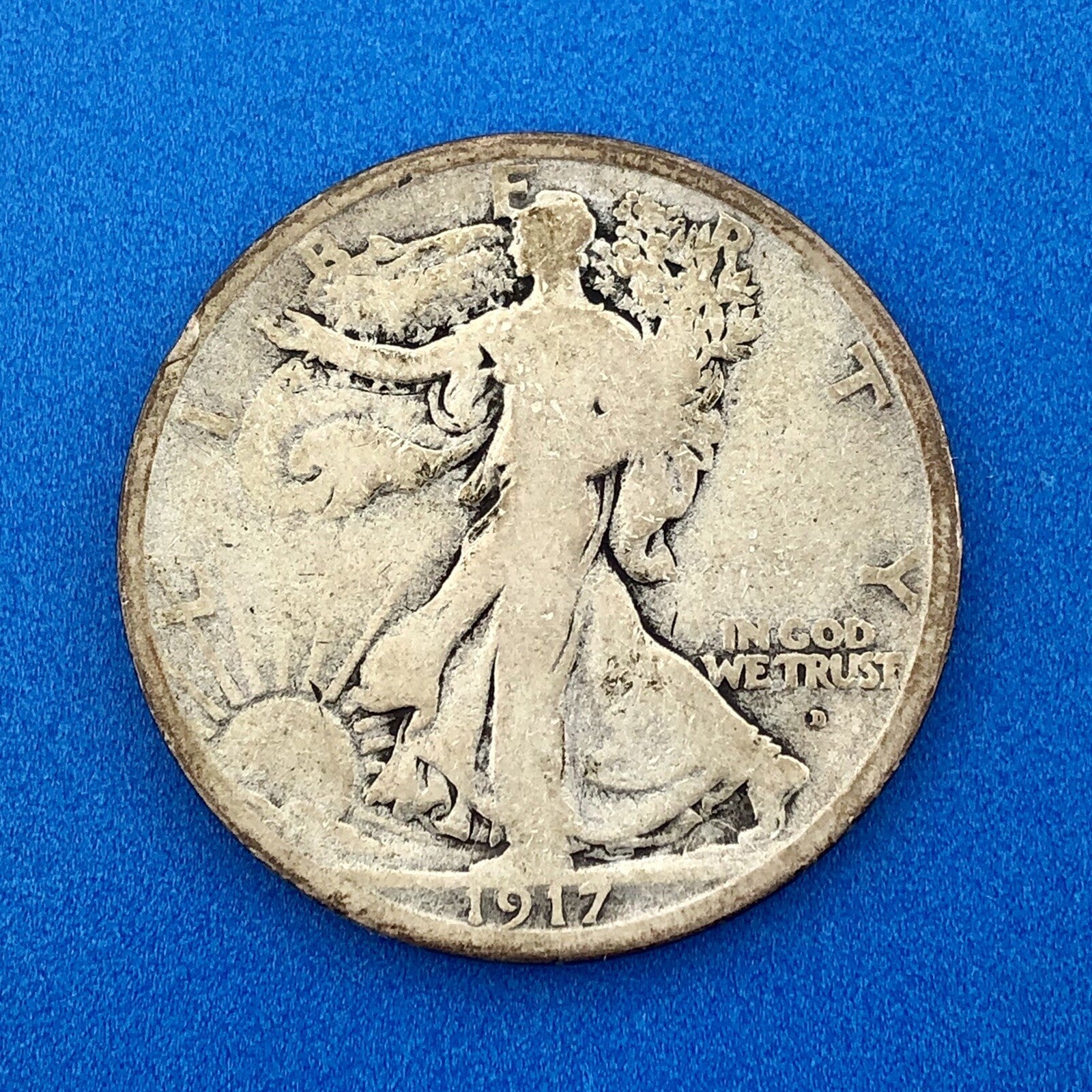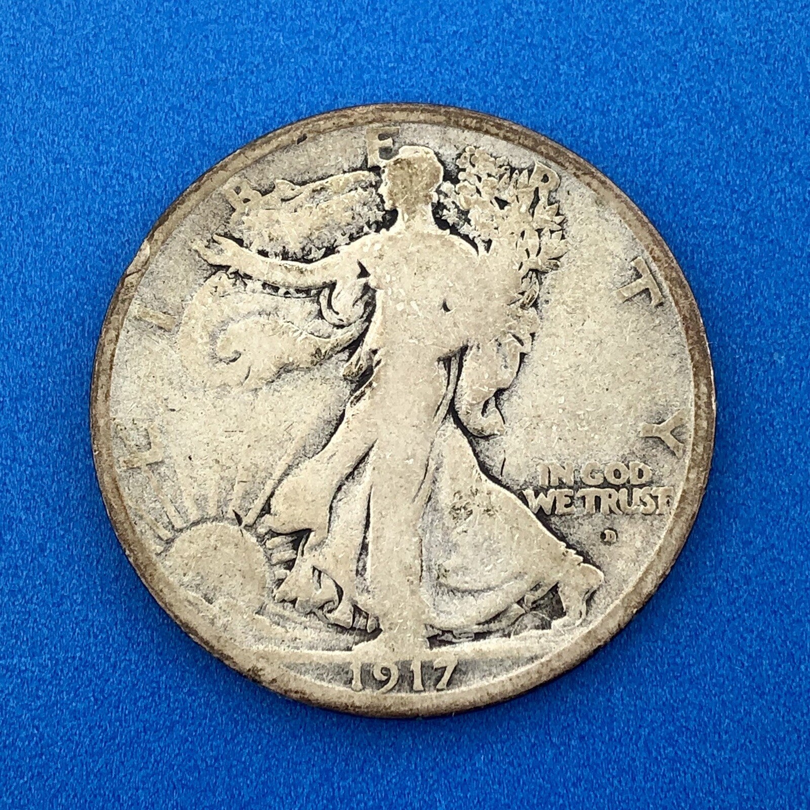 1917 D Obverse Walking Liberty Silver Half Dollar 50c Key Date Denver Coin