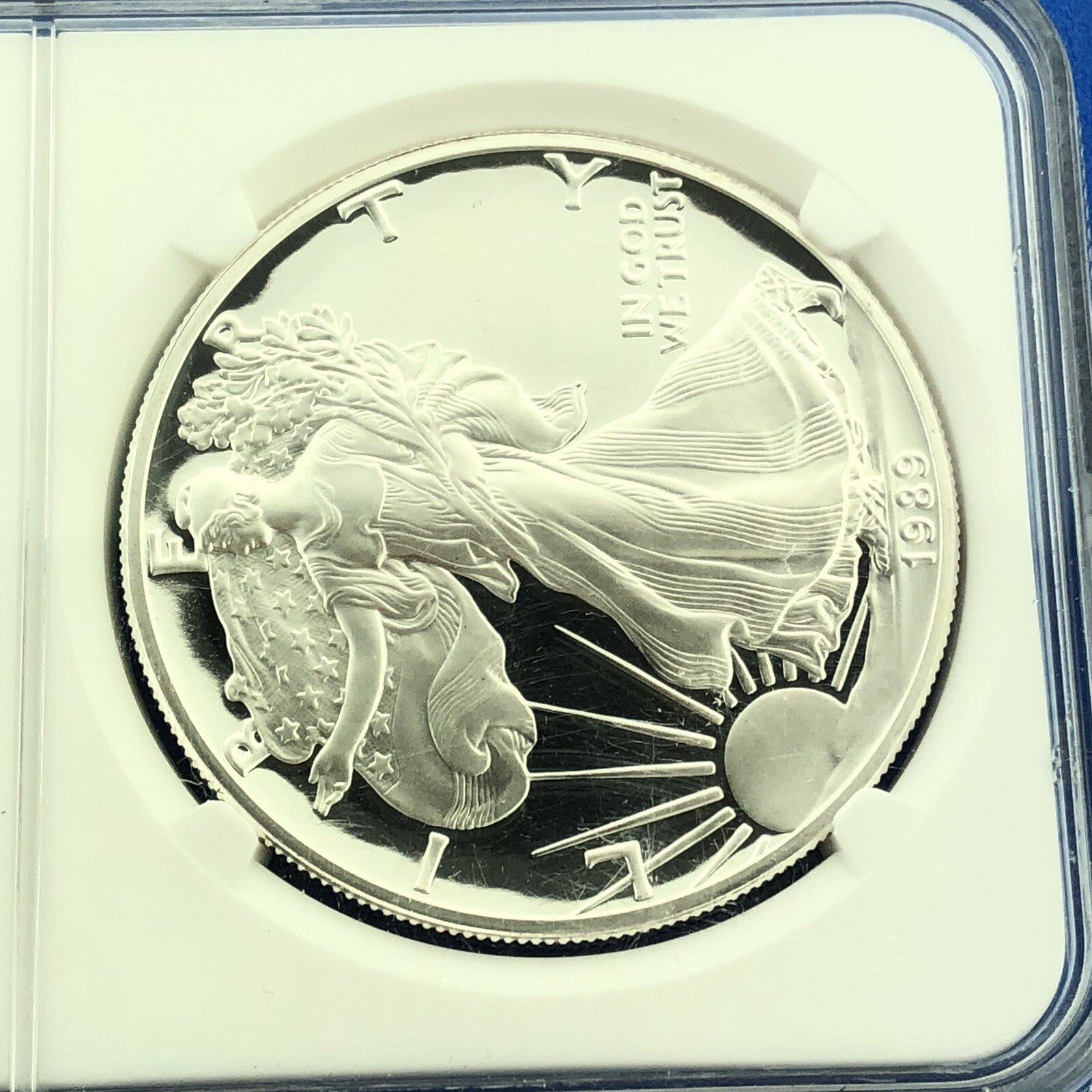 - Obverse reads: LIBERTY * IN GOD WE TRUST * 1989