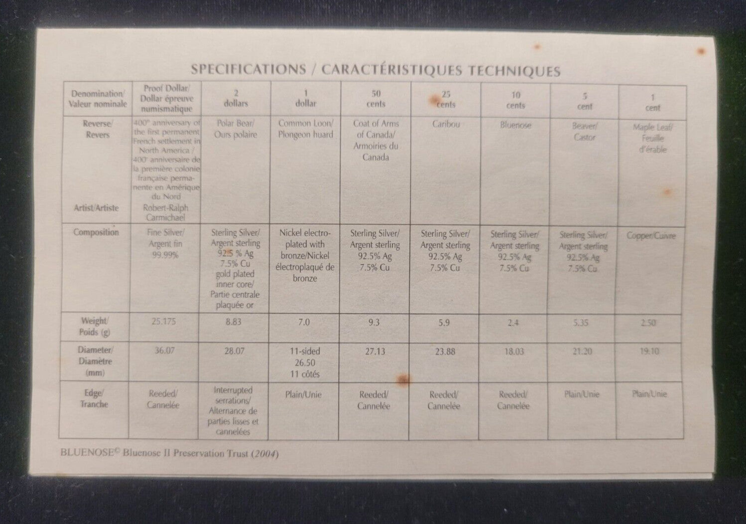 - 2004 Royal Canadian Mint French Settlement 8-Coin Fine/Sterling Silver Proof Set