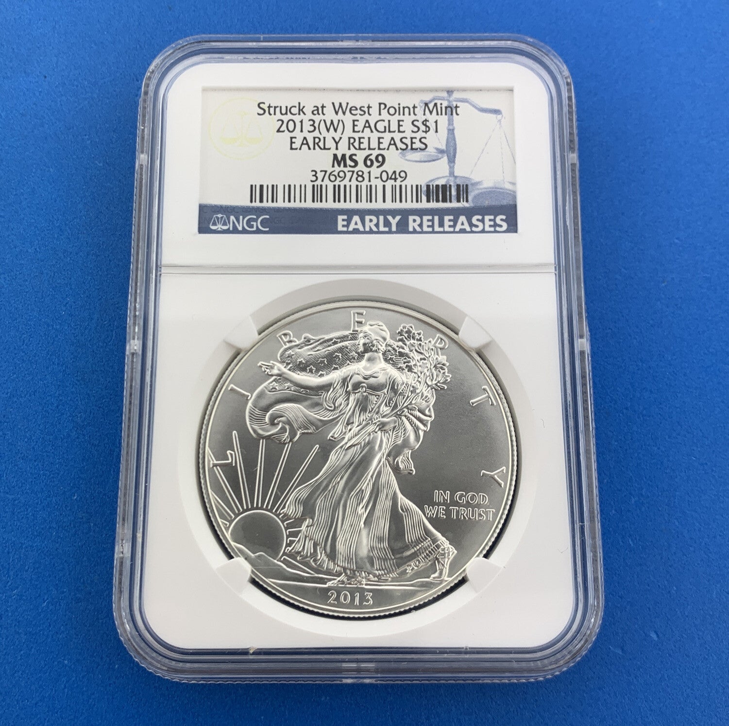 - 2013 W American Silver Eagle 999 Fine 1 Oz Silver NGC MS69 Early Release White