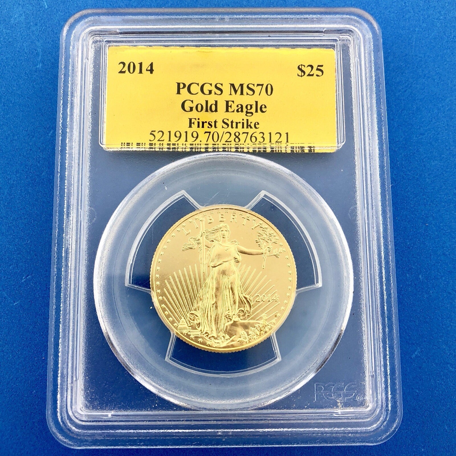 - 2014 $25 Gold 1/2 OZ PCGS MS70 First Strike Gold American Eagle Rare Label