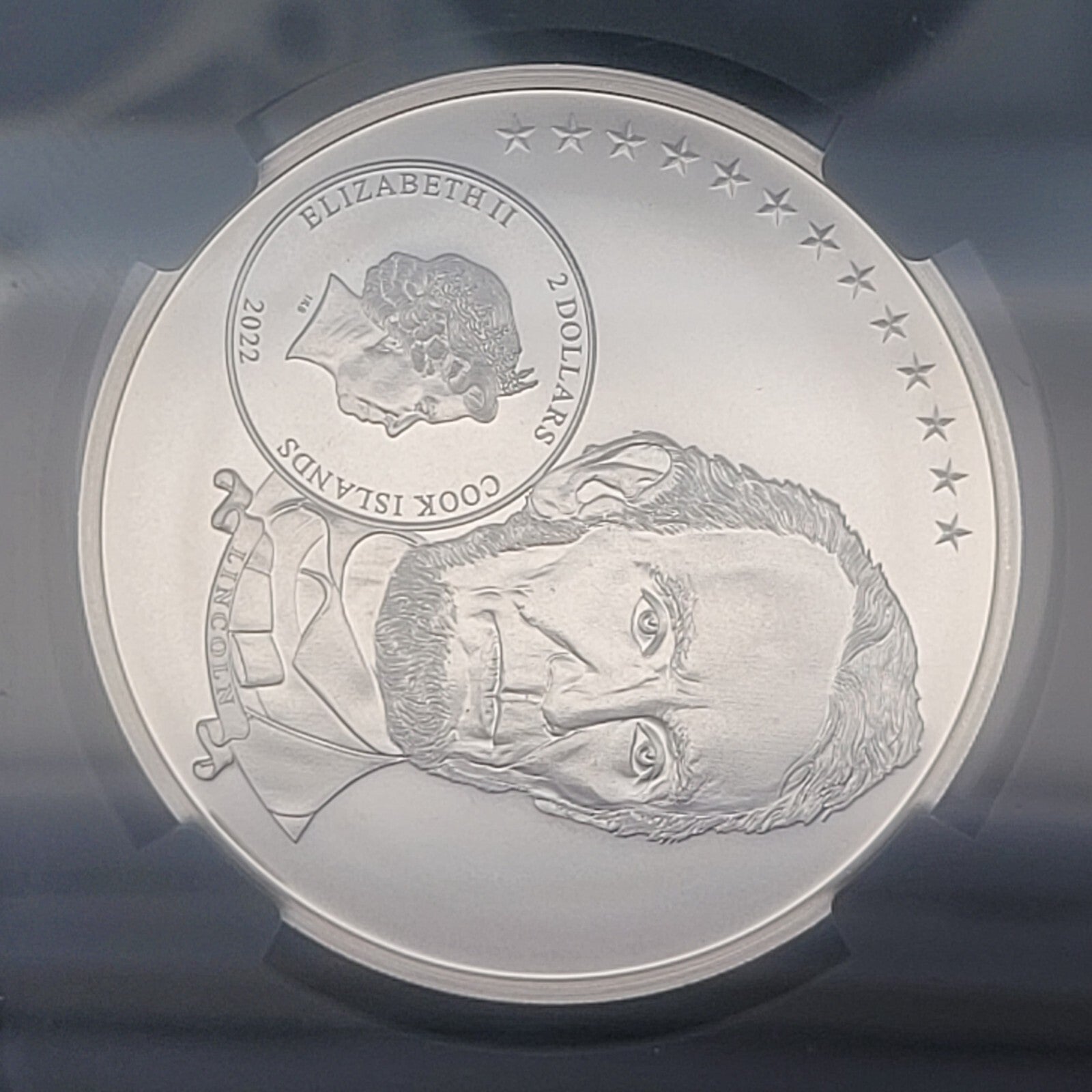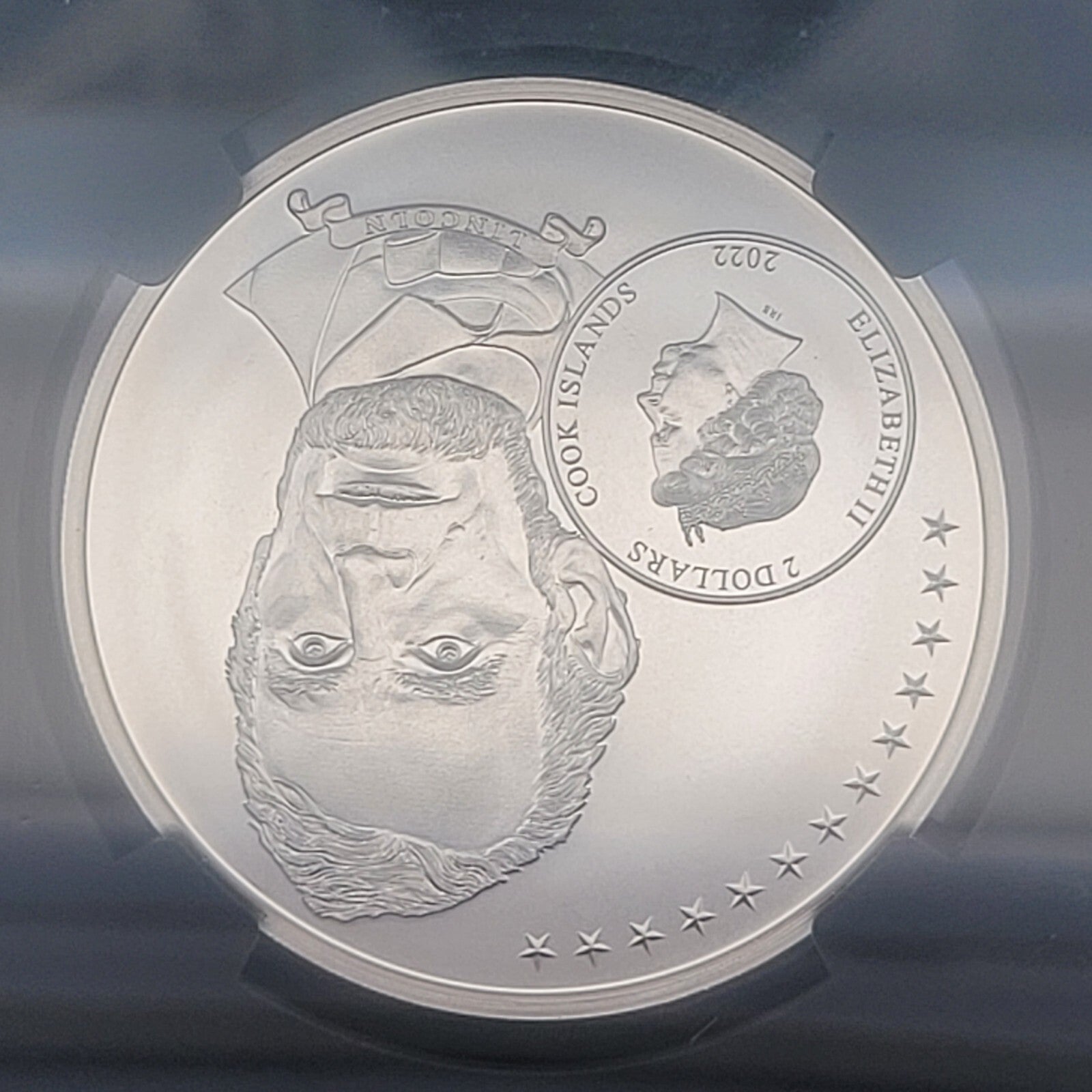 - 2022 $2 Cook Islands NGC MS70 1/2oz .999 Silver Life of Lincoln Friendship Coin