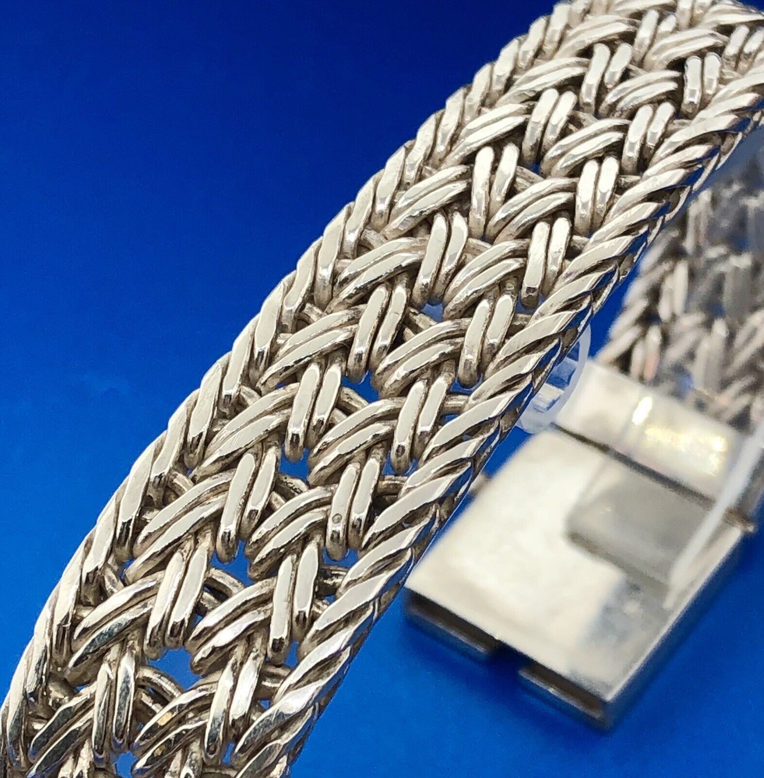 - 925 Sterling Silver Basket Weave Heavy Statement Buckle Bracelet