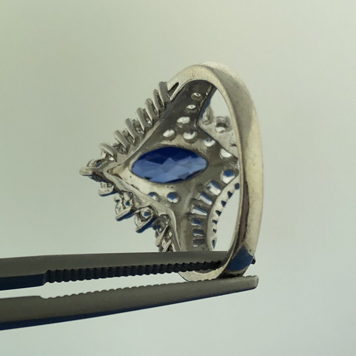 - 925 Sterling Silver Blue Spinel White Topaz Statement Anniversary Ring